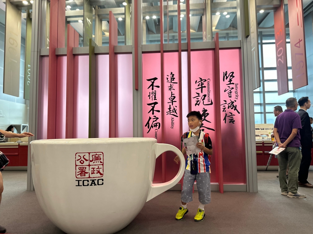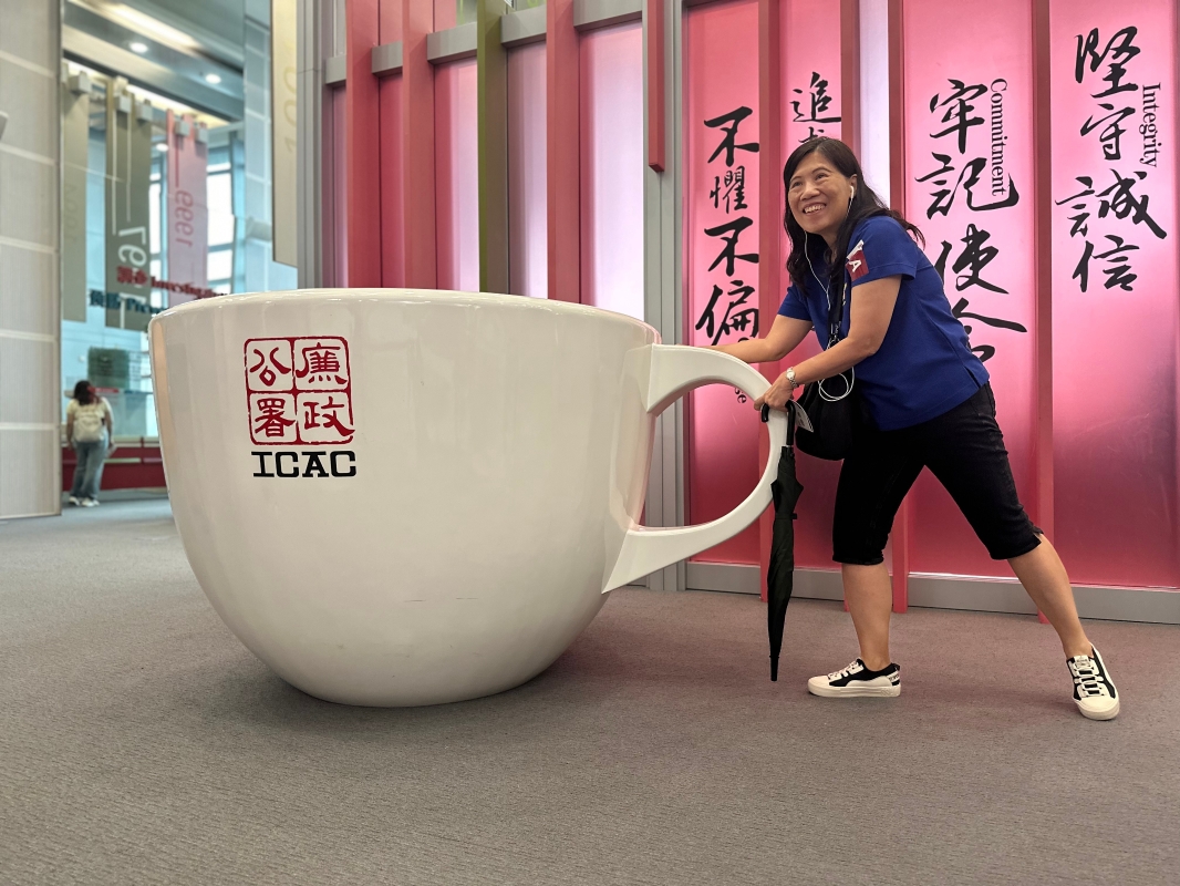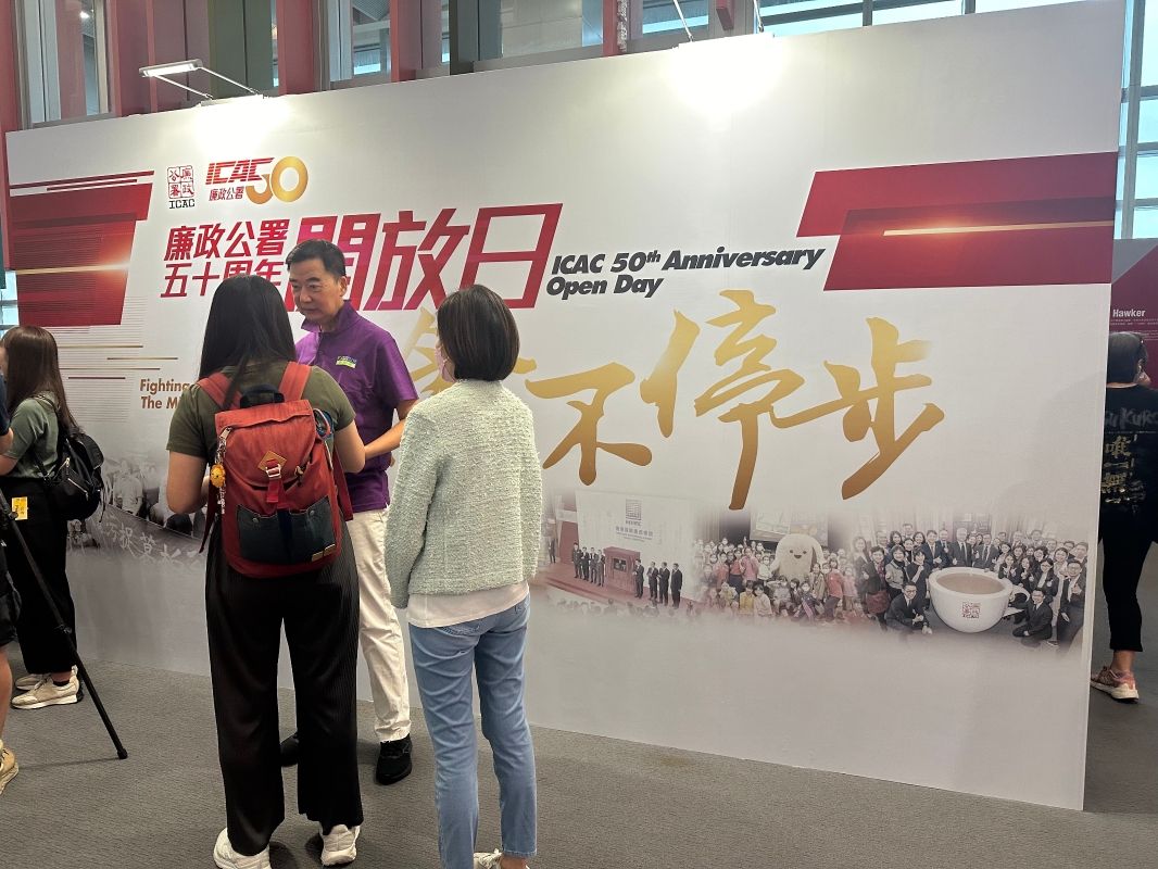 香港新聞網8月17日電(記者 陳卓儀) 香港廉政公署(ICAC)慶祝成立50周年,8月17日開啟一連兩個周末的開放日,不少市民走進神秘的廉署大樓,了解香港反貪歷程。 廉政公署自1974年2月15日成立以來,一直透過執法、預防及教育“三管齊下”的策略打擊貪污,將廉潔文化植根香港。其中,向市民開放參觀,便是教育的重要環節。