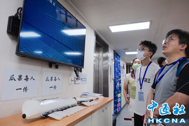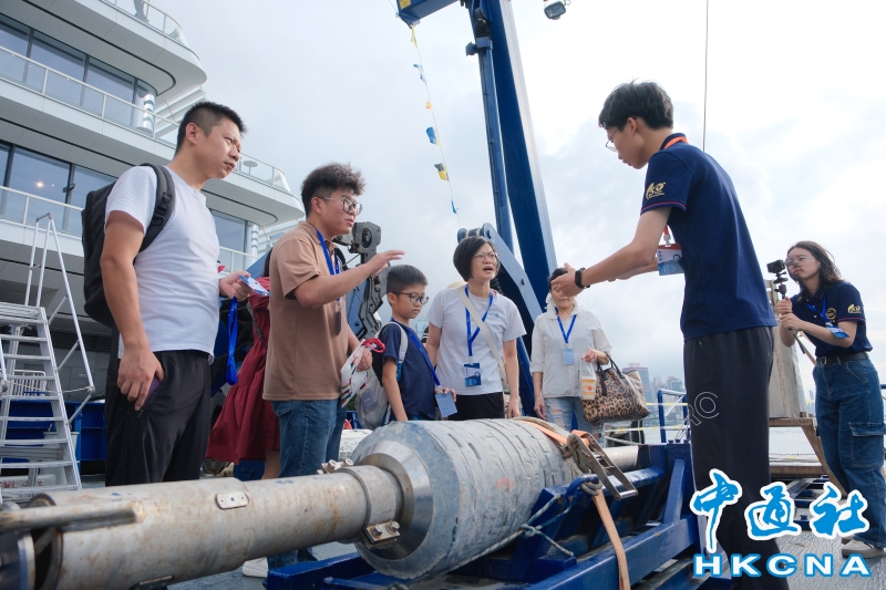 8月18日,香港市民參觀廈門大學海洋科考船“嘉庚”號。“嘉庚”號是中國第一艘採用國外方案設計、國內轉化詳細設計,並由船東擁有完全知識產權的海洋科學綜合考察船。“嘉庚”號船長77.7米,型寬16.24米,設計吃水5.3米,總噸3611,經濟航速11節,最大航速14節,續航力10000海里,自持力50天。“嘉庚”號於8月16日停泊香港,於8月17日至8月19日期間開放予公眾登船參觀,是第一艘在香港舉辦開放日活動的中國內地高校科考船。圖為市民了解機器魚。(香港中通社記者 許其皓攝) 香港中通社圖片
