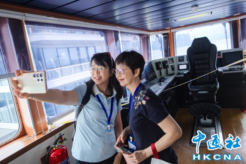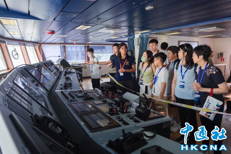 8月18日,香港市民參觀廈門大學海洋科考船“嘉庚”號的駕駛艙。“嘉庚”號是中國第一艘採用國外方案設計、國內轉化詳細設計,並由船東擁有完全知識產權的海洋科學綜合考察船。“嘉庚”號船長77.7米,型寬16.24米,設計吃水5.3米,總噸3611,經濟航速11節,最大航速14節,續航力10000海里,自持力50天。“嘉庚”號於8月16日停泊香港,於8月17日至8月19日期間開放予公眾登船參觀,是第一艘在香港舉辦開放日活動的中國內地高校科考船。(香港中通社記者 許其皓攝) 香港中通社圖片