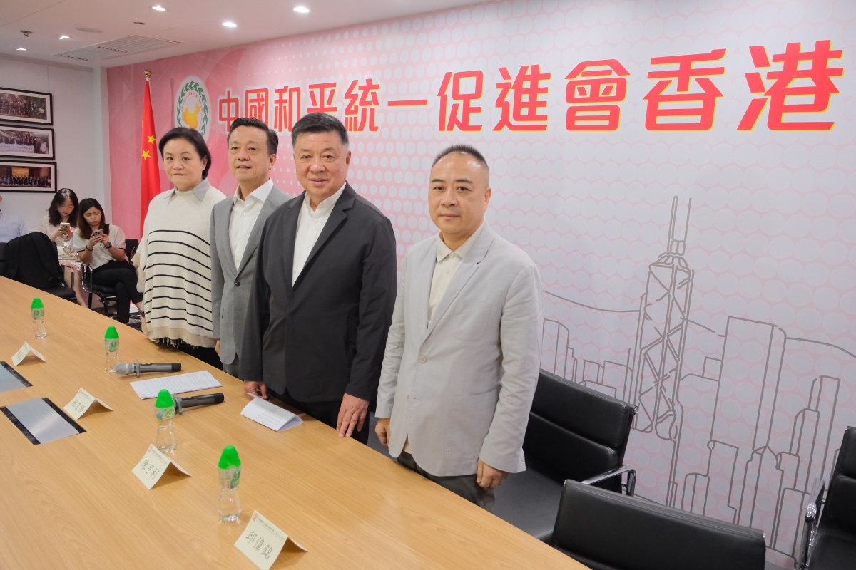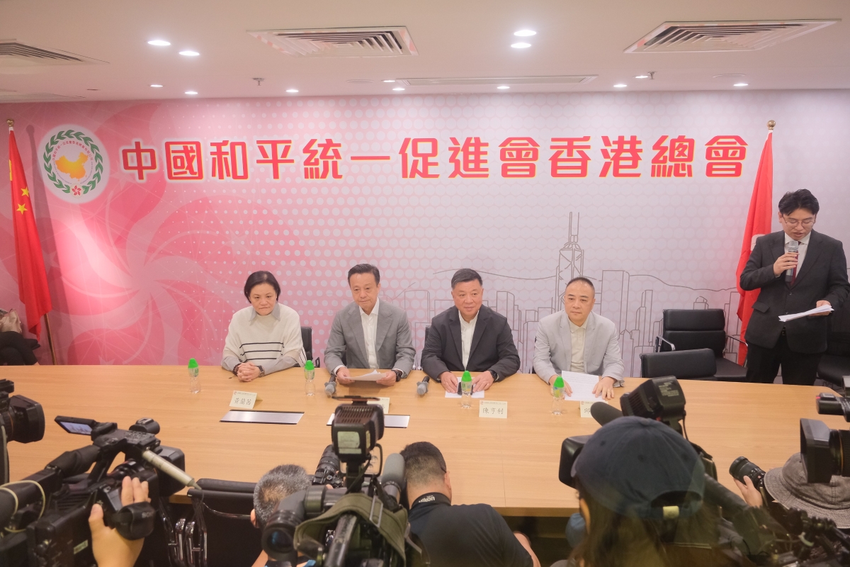香港統促總會會長姚志勝(左二)、香港統促總會執行會長陳亨利(右二)等出席新聞發佈會
