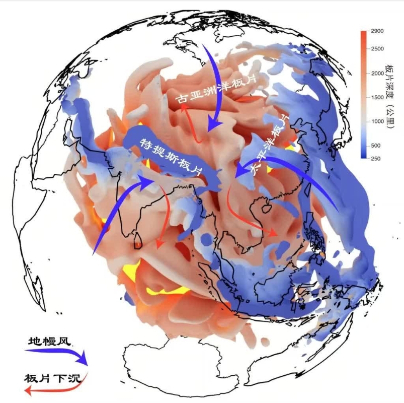 “地幔風”演示圖(受訪對象供圖) 劉麗軍表示,此次“地幔風”的科學發現有助於重塑對板塊構造理論和大陸動力學的理解。科學團隊識別出的位於印度板塊下方的北向地幔流,也僅僅是以青藏高原為中心的更大規模地幔匯聚流的一小部分。“地幔風”新理論未來可能對一系列未知的區域地理現象作出合理科學解釋,例如東亞俯衝板片向內陸漂移上千公里、西太平洋弧後盆地的形成以及澳大利亞板塊的快速北移等。(完) 【編輯:丘志彬】