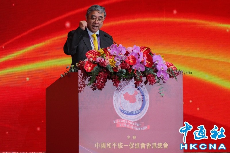 圖為台灣地區代表、新黨主席吳成典致辭。(香港中通社記者 許其皓攝) 港區全國人大代表凌友詩接受採訪時表示,今年大會在香港舉辦有三個意義:香港實施“一國兩制”,是國家解決長期歷史問題非常好的辦法。在香港舉辦,同時展示香港實踐“一國兩制”的成功;香港是有深厚愛國傳統的地方,香港不斷有愛國志士仁人在這裡成就;香港是兩岸三地交流的好地方,希望這次大會能够喚起社會重視香港這一地位。 香港黃埔軍校後代親友聯誼會會長林際平表示,對於和平統一,香港有十分重要的地理位置和示範意義,海峽兩岸形式每年都不一樣,今年有很多變化,香港作為中間地段,又是“一國兩制”踐行區,意義比往年更大。和平統一是中華民族的希望,“一國兩制”在香港的實踐,不僅是給台灣同胞看的,更是給全世界看的;“香港在這個意義上的作用是無可替代的。”(完) 【編輯:劉春】