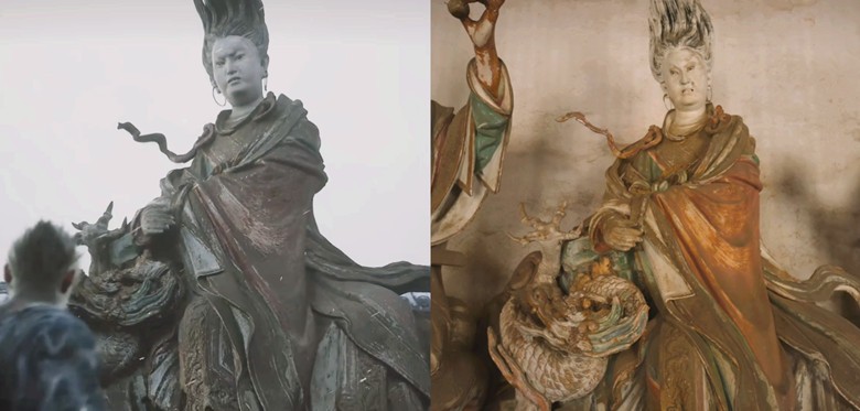 《黑神話:悟空》游戲中的亢金龍雕像(左),與現實中(右)的對比。圖自社交媒體 《黑神話:悟空》這款游戲的亮點,除了本身出色的玩法設計和劇情外,還在於其原汁原味的中國傳統文化。正如其名,游戲取材於《西游記》。為了打造出游戲世界中新穎奇幻的西游世界,創作者們將目光投向了中國傳統古建築。其中,絕大部分取景地,都在山西。 “地下文物看陝西,地上文物看山西。”事實上,中國山西省一直是中式古建築及傳統文化愛好者的旅遊勝地。
