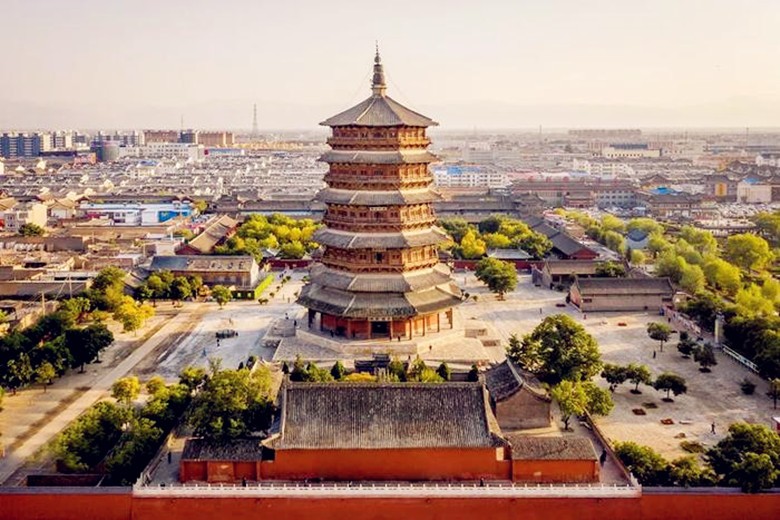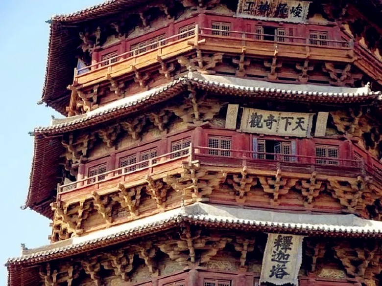 小西天大雄寶殿內的明清懸塑,是中國國內稀有的滿堂貼金懸塑精品。圖自山西文旅 【應縣木塔】 《黑神話:悟空》游戲里的那座通天寶塔,原型正是大名鼎鼎的應縣木塔,也就是應縣佛宮寺釋迦塔。