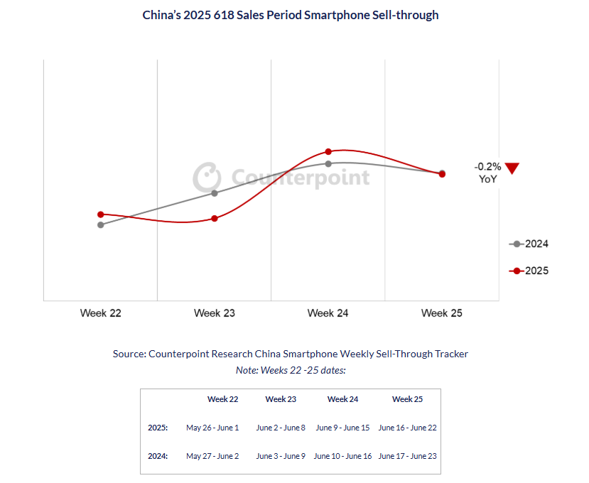 Counterpoint Research 中國智慧手機銷售份額。(資料來源:Counterpoint Research) 中國 2025 618 銷售期智慧手機銷量