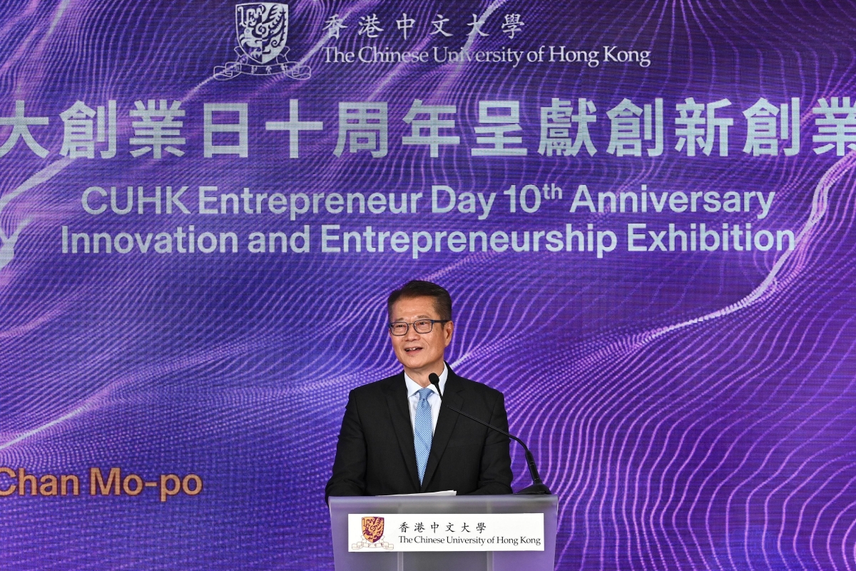 圖源:政府新聞處。 陳茂波當日在中大創業日十周年呈獻創新創業展致辭表示,政府亦鼓勵大學與特區政府引進的重點企業以及在大灣區兄弟城市的夥伴,在科研方面開展更多合作,形成更大的協同效應。