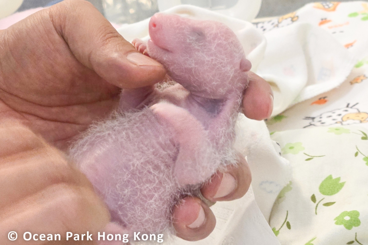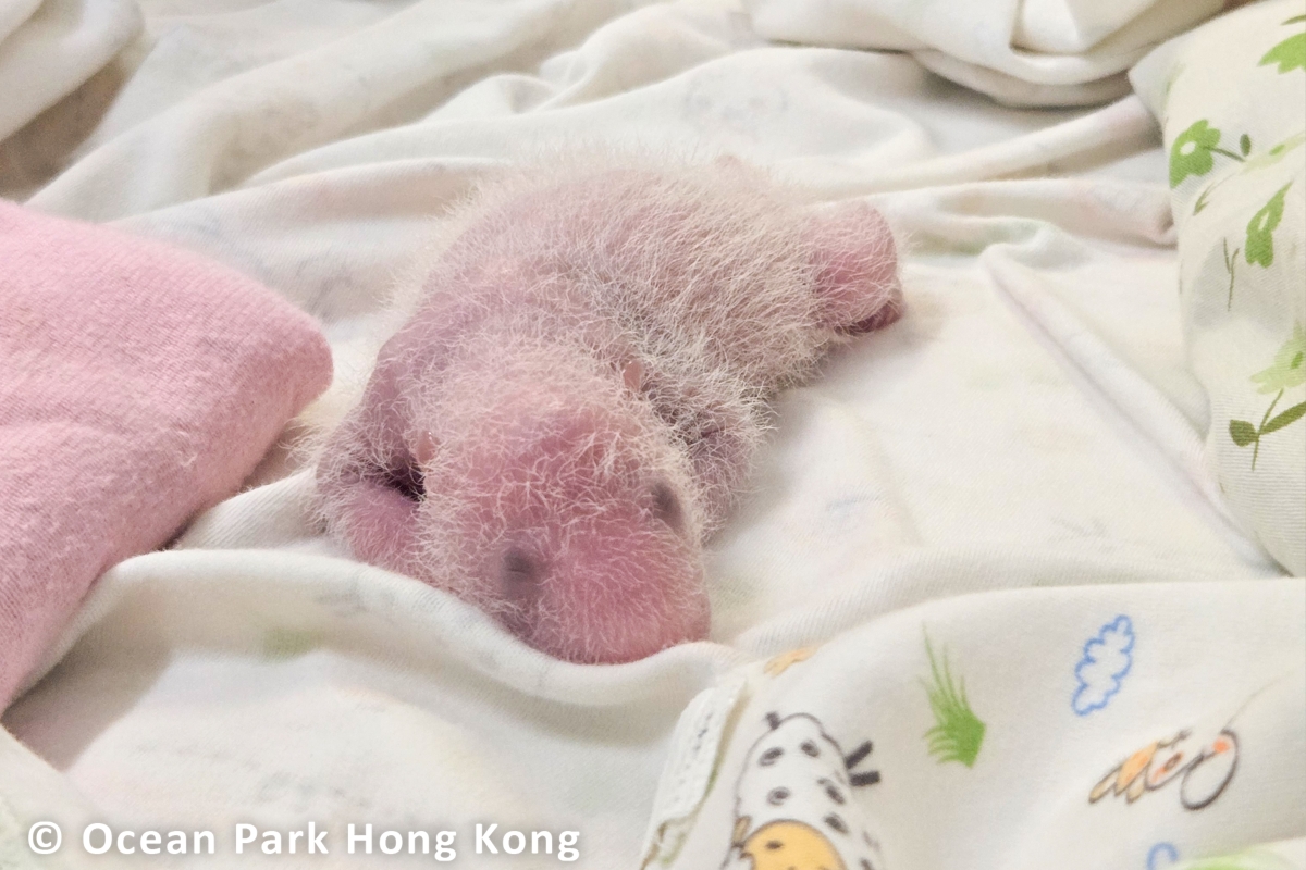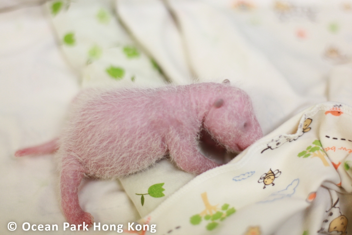 香港新聞網8月22日電 中央贈港大熊貓“盈盈”的龍鳳胎寶寶已出生一星期。香港海洋公園22日表示,經過了關鍵的“收水期”,這對仍然脆弱的大熊貓寶寶健康漸趨穩定,體重亦有所增加。大熊貓經典的“黑眼圈”、黑色耳朵和肩膀,在寶寶身上已開始隱約可見。