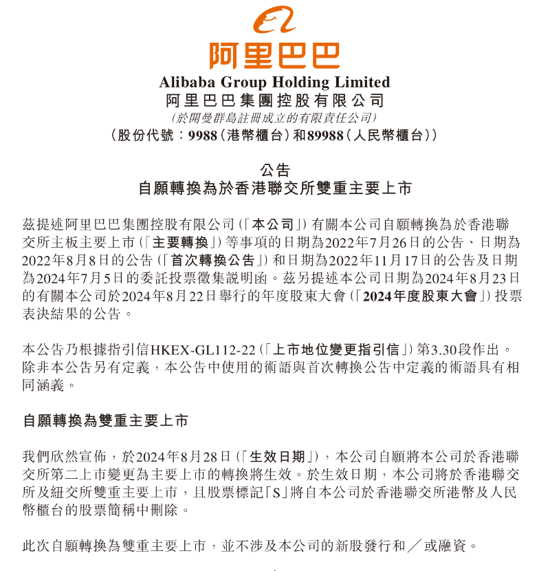 香港新聞網8月23日電 阿里巴巴集團今日(23日)發佈公告,宣布新增香港為主要上市地,將於8月28日在香港聯交所主板主要上市,成為在港交所、紐交所雙重主要上市的公司。一旦完成雙重主要上市,阿里巴巴就有資格納入港股通“北水”買賣範圍。