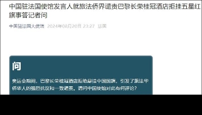 香港中通社8月23日電 台北消息:法國巴黎長榮桂冠酒店因拒掛中國五星紅旗,承受重大輿論壓力,並遭到多個華人商會抵制。長榮集團23日發表道歉聲明指,集團認同“九二共識”、反對“台獨”,將加強員工教育訓練,避免類似情況再度發生。