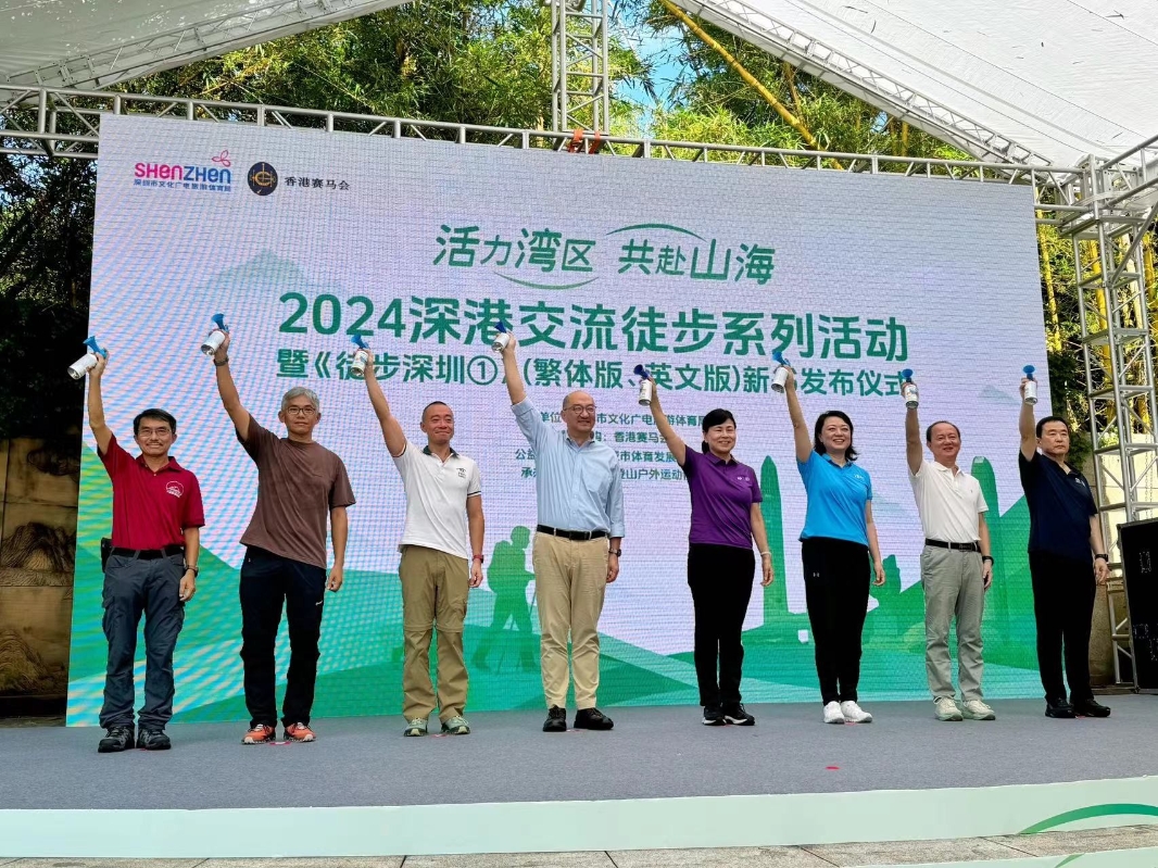 《徒步深圳①》發佈 深港山友相約徒步鯤鵬徑香港新聞網8月25日電 8月25日上午,2024深港交流徒步系列活動暨《徒步深圳——走讀深圳100條特色步道①》(繁體版、英文版)新書發佈儀式在深圳筆架山公園舉行。300名深圳、香港山友從筆架山出發,共同徒步穿越鯤鵬徑第8段,暢享書中所描繪的“山海連城 綠美深圳”的獨特魅力。 本次活動由深圳市文化廣電旅遊體育局主辦,得到香港賽馬會贊助、深圳市城市體育發展基金會公益支持,并由深圳市登山戶外運動協會承辦。 活動當天,市人民政府副市長張華、香港賽馬會公司事務執行總監譚志源,市文化廣電旅遊體育局、市港澳辦、香港賽馬會、深港社會團體、香港相關報社等嘉賓出席了儀式。