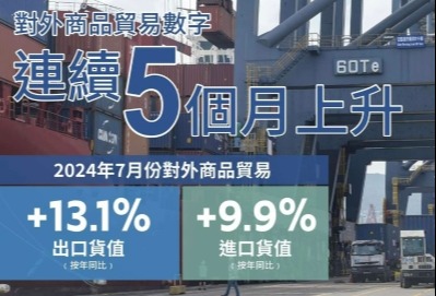 香港中通社圖片 7月錄得有形貿易逆差218億港元,相等於商品進口貨值的5.3%。 輸往亞洲的整體出口貨值按年升15.7%。此地區內,輸往部分主要目的地的整體出口貨值錄得升幅,尤其是馬來西亞升39.2%、內地升23%、越南升21.7%。另一方面,輸往印度跌27.9%,輸往新加坡跌16.8%。 除亞洲目的地外,輸往其他地區的部分主要目的地的整體出口貨值錄得升幅,尤其是荷蘭升78.9%和美國升19.7%。另一方面,輸往英國則跌31%。 今年首7個月,商品整體出口貨值按年上升12.4%,進口貨值上升8%。首7個月錄得有形貿易逆差1828億港元,相等於商品進口貨值的6.6%。 政府發言人表示,7月出口貨值繼續錄得雙位數按年增長,輸往內地、美國及歐盟的出口繼續明顯擴張,但輸往其他主要亞洲市場的出口表現參差。展望未來,如果外部需求維持穩定,香港出口的正面表現應該可以延續,政府會密切留意情況。(完) 【編輯:彭玉婷】