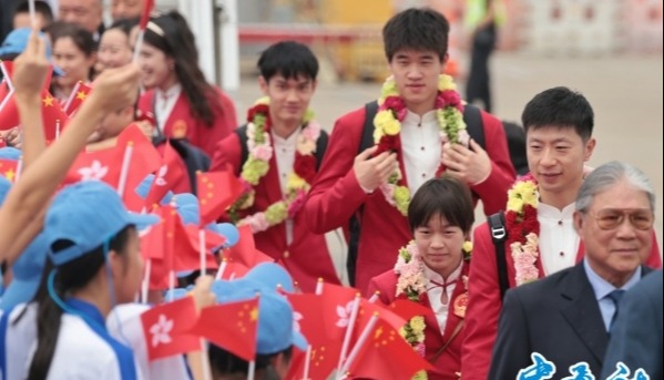 香港中通社記者 徐嘉儀 香港學生許同學為了自己的偶像全紅嬋而來,因水底漂亮的一記轉身而迷上她後,許同學便一直期待能與偶像見面。為此她特別準備了“大禮包”,跑了多家店鋪買了十隻全紅嬋喜歡的“小烏龜”,只為和全紅嬋說聲“加油”。 兩位中國乒乓“迷弟”何同學和黃同學今次特別從寧波和順德趕來,只為見上中國“乒乓天團”運動員們一面。受“偶像”感染,何同學努力練習乒乓球,希望有朝一日能與偶像並肩。“他們的精神感染了我,我也想學乒乓球。”黃同學告訴中通社記者,為此他和媽媽提前4個小時就來到運動員下榻的酒店。 真誠與友善 29日中午12時許,巴黎奧運會內地奧運健兒代表團乘坐飛機抵達香港國際機場,香港各界代表在機場舉行歡迎儀式。香港政務司司長陳國基、文化體育及旅遊局局長楊潤雄、港協暨奧委會會長霍震霆等到場迎接。 在警察銀樂隊奏響的《歡迎進行曲》中,團長、國家體育總局局長高志丹帶領一眾運動員步出機艙。160名少年警訊成員帶上警方公共關係部推出的吉祥物“豆苗仔”公仔,到機場停機坪接機,喜愛公仔的全紅嬋接過“豆苗仔”愛不釋手。