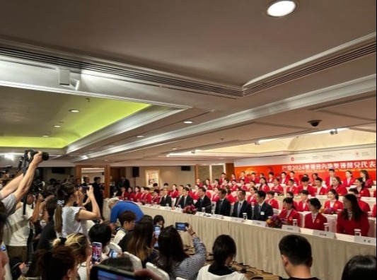 香港中通社記者 謝光磊 下午下午4時許,高志丹率領包括中國隊首位“六金王”乒乓球運動員馬龍、17歲“三金王”跳水運動員全紅嬋、“奧運飛魚”打破100米自由泳世界紀錄的潘展樂等65名運動員和8名教練進場,現場星光熠熠。 約15分鐘的問答時間,記者區齊刷刷舉手提問,9位“幸運兒”被抽中,問題五花八門,普遍圍繞香港市民感興趣的話題:對香港青年有何寄語、來香港要品嘗哪些美食等。 “有熱愛就去追,不要害怕失敗。”全紅嬋回答時站了起來,可愛反應逗笑大家,現場氣氛頓時活躍起來。在相關視頻下網友熱評“像極了被老師突然點名”,也有網友稱“還是那個可愛的全妹”。 曾來香港參加過游泳世界杯的運動員張雨霏稱自己對香港還算熟悉,喜歡香港早點,她舉例時更用粵語說“蝦餃、叉燒包”,誠意滿滿。 此前頻頻因耿直採訪登上熱搜的潘展樂,在重提要當小朋友榜樣時認真答到:“要不怕苦、不怕累、為國爭光。我打算先把自己訓練好,等自己再成熟一點後才成為別人的榜樣。” 此次是馬龍第四次參加訪港活動,他說,感受到特區政府和市民對代表團的熱烈歡迎,讓他十分感動,希望這次有更多機會跟香港青年交流,“我想這一定會是職業生涯中特別的回憶。” 代表團中還有今年9月將在香港教育大學讀博士的花樣游泳金牌運動員王柳懿、王芊懿。王柳懿談到她對香港的印象時說,香港是個非常國際化的城市,擁有很好的教育環境和資源。她們選讀體育教育及運動科學相關專業,希望提升自身專業知識,推動體育科學的進步,為中國花游未來發展貢獻力量。 散場之後,一眾運動員魚貫而出,在半路遇到擔當義工的小朋友們,更停下腳步,熱情與他們合影留念。 台上是叱吒四方的戰士,台下是善意溫暖的鄰家青年。