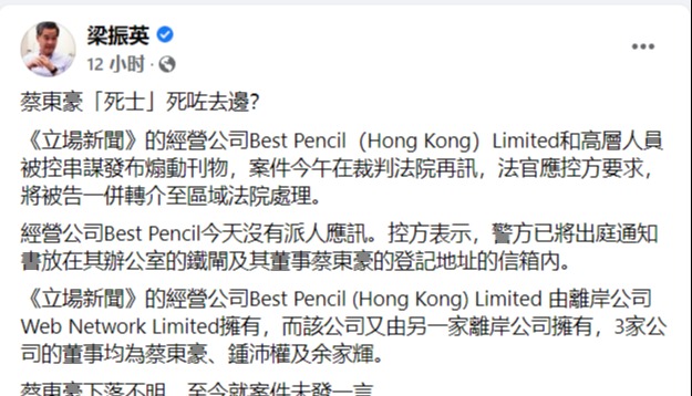 香港新聞網8月30日電 《立場新聞》案件經歷57天的審判,法庭29日裁判,指出《立場新聞》在修例風波期間成為抹黑和中傷中央及特區政府的工具,裁定3名被告(即網媒《立場新聞》的兩任總編輯鍾沛權、林紹桐以及營運《立場新聞》的公司Best Pencil(Hong Kong)Limited全數被定罪。 推荐阅读:香港特區政府:“串謀發布煽動刊物”案的裁決彰顯公義 外交部駐港公署正告美西方政客:停止假藉“新聞自由”干預司法的政治操弄