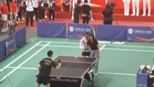 (有片)內地奧運健兒訪港 馬龍持木球拍對陣黃鎮廷
