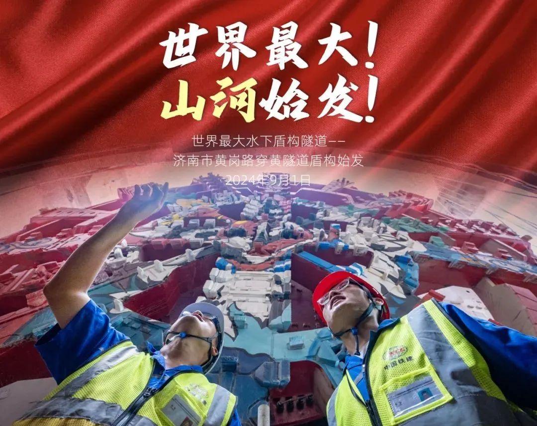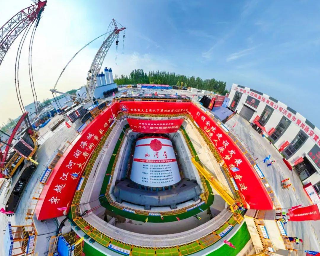 圖源:“中國鐵建”公眾號圖片(下同) 近年來,濟南市大力踐行“攜河北跨”戰略,跨越黃河天塹的交通設施密度不斷增加。此次盾構始發的濟南市黃崗路穿黃隧道穿越黃河和沿線多條公路,全長5755米,其中盾構段長約3290米,將與在建G309互通立交相銜接,打通濟南市黃河兩岸交通大動脈。 為了保障這條世界最大水下盾構隧道順利建設,施工單位中鐵十四局量身打造了“鋼鐵巨獸”“山河號”盾構機。該設備刀盤直徑17.5米,相當於6層樓高,配備帶壓複合型刀盤、伸縮式主驅動等先進技術和超前地質預報、同步注漿檢測等智能化裝備系統,盾構機總裝達到世界先進水平。