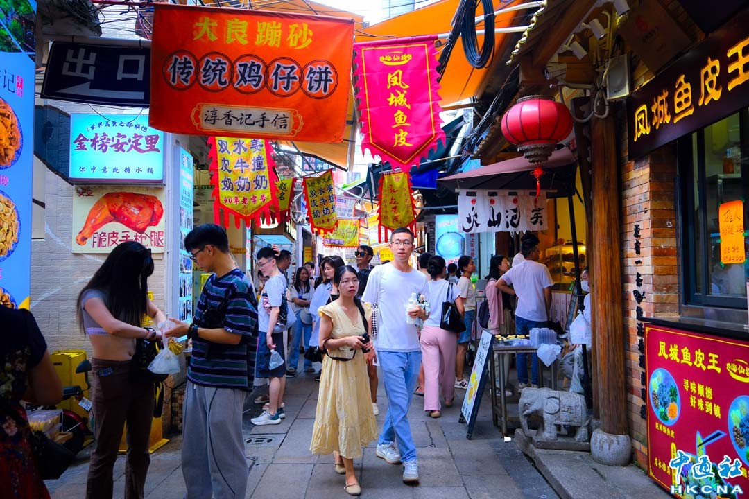 近日,中國內地暑假進入尾聲,廣東順德金榜街吸引了大批遊客慕名而來旅遊品嘗美食。順德金榜街,位於順德大良的中心地帶,是一條古老而又充滿生機的街巷。它的名字來源於古代科舉考試金榜題名的公佈地,因此得名“金榜街”。這條街道不僅因其歷史背景而聞名,還因為其獨特的嶺南建築風格和豐富的美食文化吸引了眾多遊客。(香港中通社記者 許其皓攝)