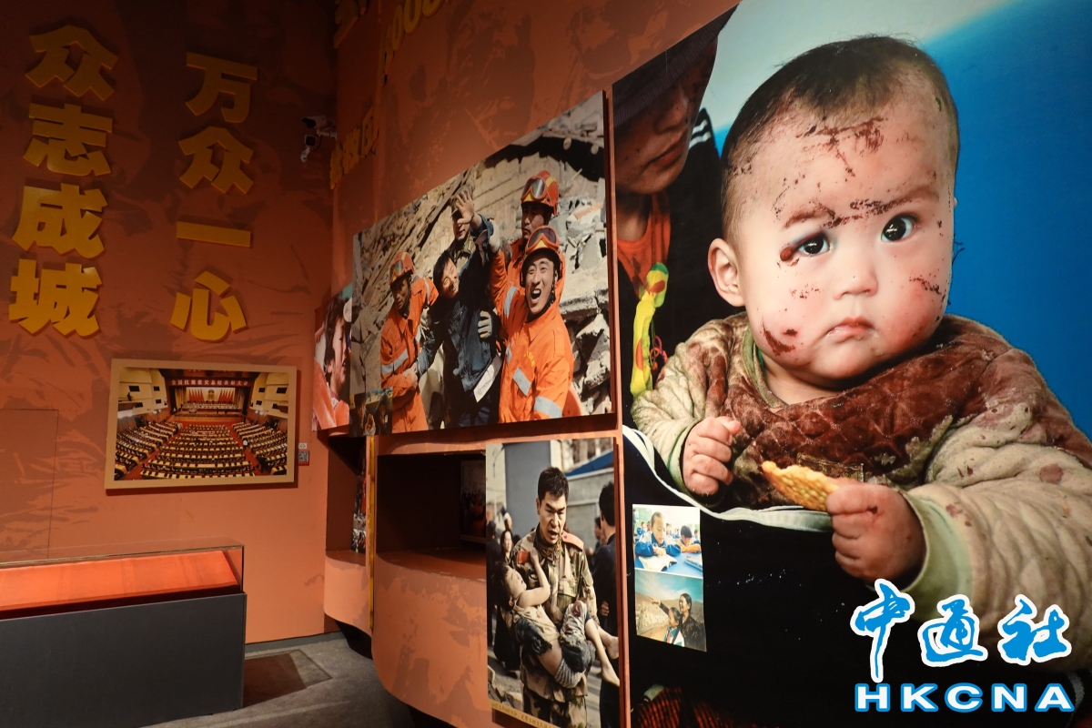 一座半身銅像,在館內格外引人注目。這是捨身救人的香港同胞黃福榮的銅像,銅像左胸刻有紫荊花圖案,銅像下面鋪滿了白色哈達。 46歲的黃福榮,原是一名貨車司機,多年熱心公益。2008年汶川地震後,黃福榮到四川災區做了兩個月義工。青海玉樹地震時,他在一所孤兒院做義工,本已逃出倒塌院舍的他,義無反顧折返現場搜救3名孤兒和1名老師,但卻在餘震中遇難。