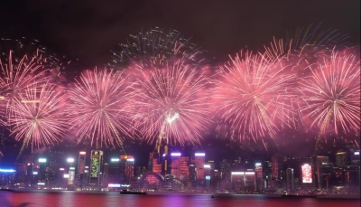 2024香港維港夜空煙花綻放賀新春。香港中通社資料圖