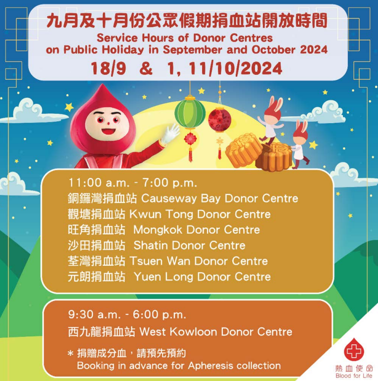 中心每日需收集650包血液,以維持香港醫院所需。受早前颱風天氣及暑假外遊影響,市民捐血意欲不高。中心行政及醫務總監李卓廣呼籲市民尤其是O型、A型及B型血人士踴躍捐血。 年齡介乎16至65歲(符合特定條件人士可捐血至75歲),體重達41公斤或以上的健康人士均可加入捐血者的行列。中心指,市民可透過中心網站、手機應用程式HK Blood或致電捐血站預約捐血。大部分捐血站,如銅鑼灣、旺角、觀塘捐血站等,在公眾假期照常開放。(完) 【編輯:譚暢】