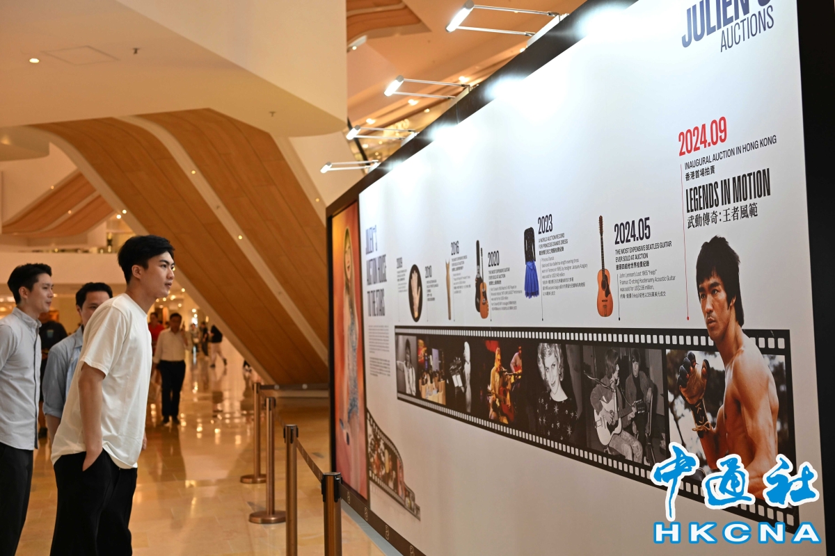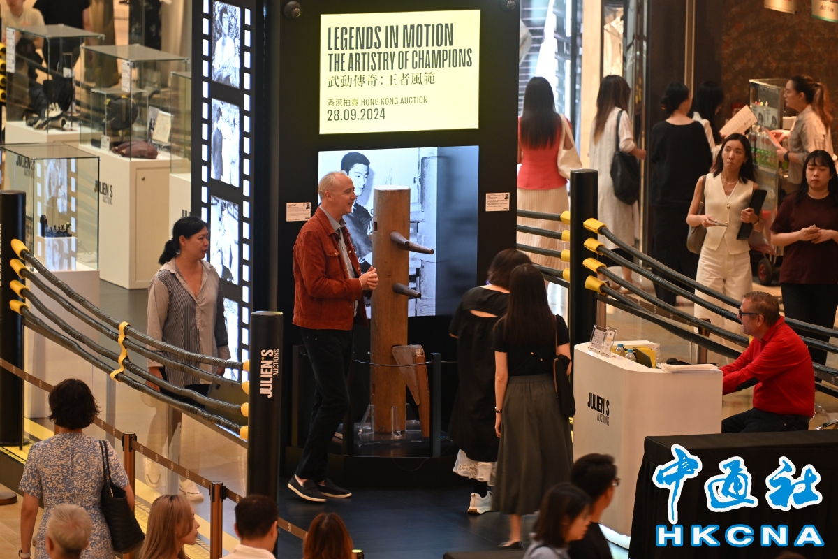 “武動傳奇:王者風範”在太古廣場舉行預展。(香港中通社記者 洪少葵攝) 在“武動傳奇:王者風範”的預展中,與李小龍有關的展品佔據了重要的展區,吸引了廣泛的關注。朱利安拍賣行的聯合創始人及執行董事Martin Nolan表示,選擇李小龍作為主題是因為他是一位全球知名人物,與瑪麗蓮·夢露、米高·傑克遜、戴安娜王妃和科比·布萊恩特等人有著相似的影響力,雖然他們都英年早逝,但卻在世上獲得了廣泛的認可和喜愛。Nolan相信,李小龍的拍品將會持續增值。