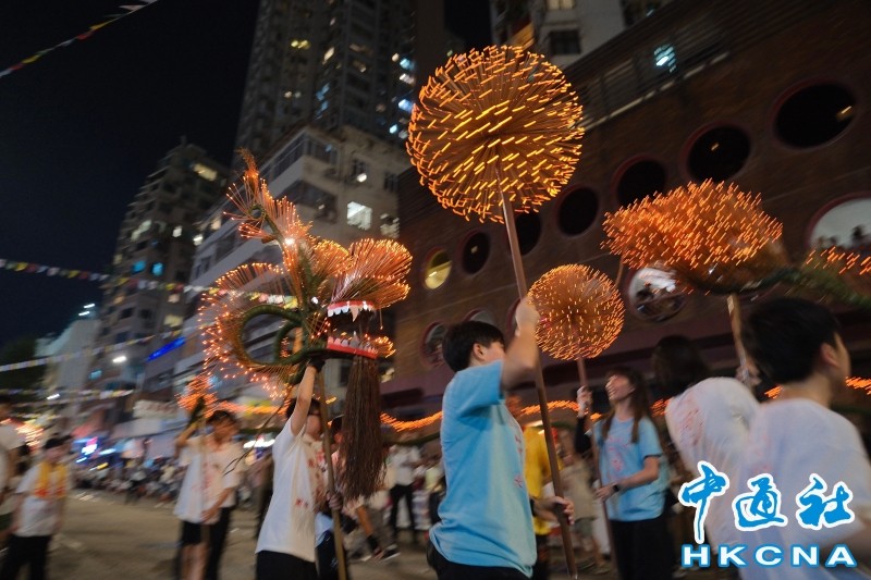 每年中秋節,大坑街頭都因舞火龍而熱鬧非凡。圖為今年加入由大約100名小朋友舞動長達20米的LED小火龍。(香港中通社記者 許其皓攝) 香港中通社圖片 天色未暗,天后地鐵站湧出大批人流,男女老少、剛下班的打工仔、打扮精緻的遊客、提花燈牽小孩的夫妻,摩肩接踵,共赴盛會,往大坑浣紗街走去,那是觀賞舞火龍的最佳位置。 “很期待!我們第二次來香港了。”來自澳大利亞的Will與妻子前來,手上提著兩盒月餅。他向記者表示,上次了解到舞火龍是香港的傳統習俗後,就決定9月再來,香港蘊含很多中華文化元素,又有自己的地方特色,是一個多彩城市。 晚上6時許,火龍在大坑蓮花宮點睛開光,緊接著到安庶庇街插香後起龍,作致敬禮。 記者在浣紗街和書局街交界處與市民一同等待,率先迎來由百位小朋友舞動的LED燈小火龍熱場開路。至晚上8時許,撲面而來的熱浪和濃濃香火味告訴觀眾:真正的火龍近了。 頃刻間,全長67米、插滿香枝的巨龍從黑夜中蹦出,點燃了整條街道。“來了來了!”兩旁的觀眾高舉手機,只見火龍追著龍珠,一個轉身“穿”進浣紗街,或靠左或靠右舞動,給兩旁觀眾“沾沾喜氣”。