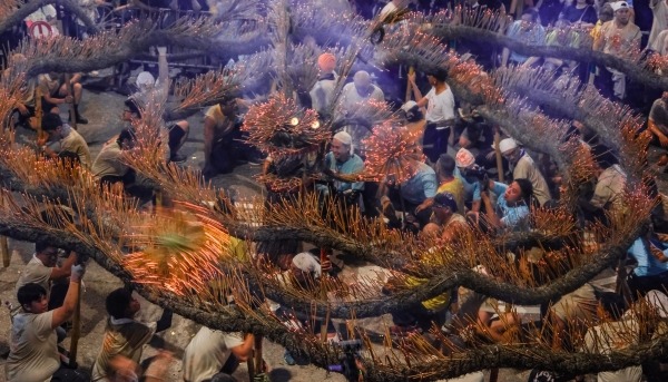 每年中秋節,大坑街頭都因舞火龍而熱鬧非凡。圖為今年加入由大約100名小朋友舞動長達20米的LED小火龍。(香港中通社記者 許其皓攝) 香港中通社圖片 緊接著,巨龍遇上了小火龍,共同呈獻“打龍餅”,一圈圈飛轉,意味喜結龍團,團團圓圓。現場火光攢動,目不暇接。 龍在天上飛,人在火中舞。火龍健兒賣力舞動著,點點火花濺在身上,一個接一個的俯身、高舉、跳躍······彷彿與火龍融為一體。 火龍按傳統舞至京街、新村街、書館街等;至10時許遊街完畢,舞龍師傅將未燒盡的香枝拔下,送給市民和遊客,傳遞祝福和好運。 在香港定居七年的Patrick對記者表示,雖不是第一次看舞火龍,仍覺得非常震撼,“今年還有新驚喜,LED小龍和大龍共舞,很可愛很有意思,香港在文化傳承上做得很好。” 這項始於19世紀末的習俗,源於大坑村暴發瘟疫,村民繞村舞動火龍後,瘟疫停止,此後村民每年都以舞火龍保大坑合境平安。 傳統延續至今,已成為香港年度盛事;2011年,大坑舞火龍更被列入國家級非物質文化遺產名錄。無論社區面貌如何改變,香港百年情懷不減,火龍在眾人合力下生生不息,更具活力。(完) 【編輯:王瑤】