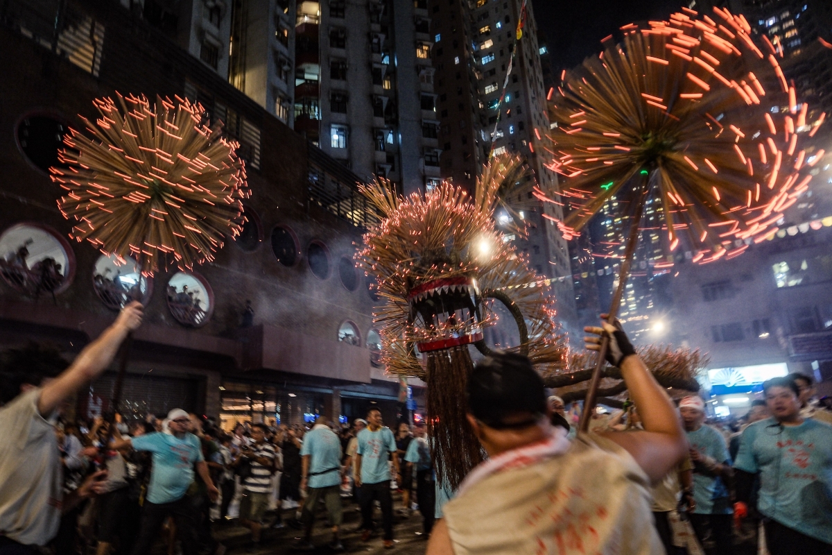 香港傳統民俗活動大坑舞火龍當晚起一連三晚舉行