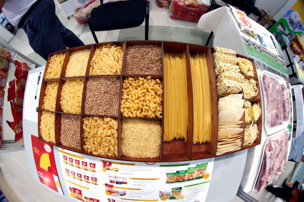 示意圖,圖為東歐國際工業博覽會上的一處食品商品展台。新華社資料圖