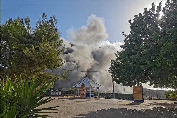 營區外航彈爆炸瞬間。邵寶磊攝