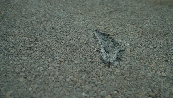 航彈殘片將營區水泥路面砸出坑洞。瞿發統攝