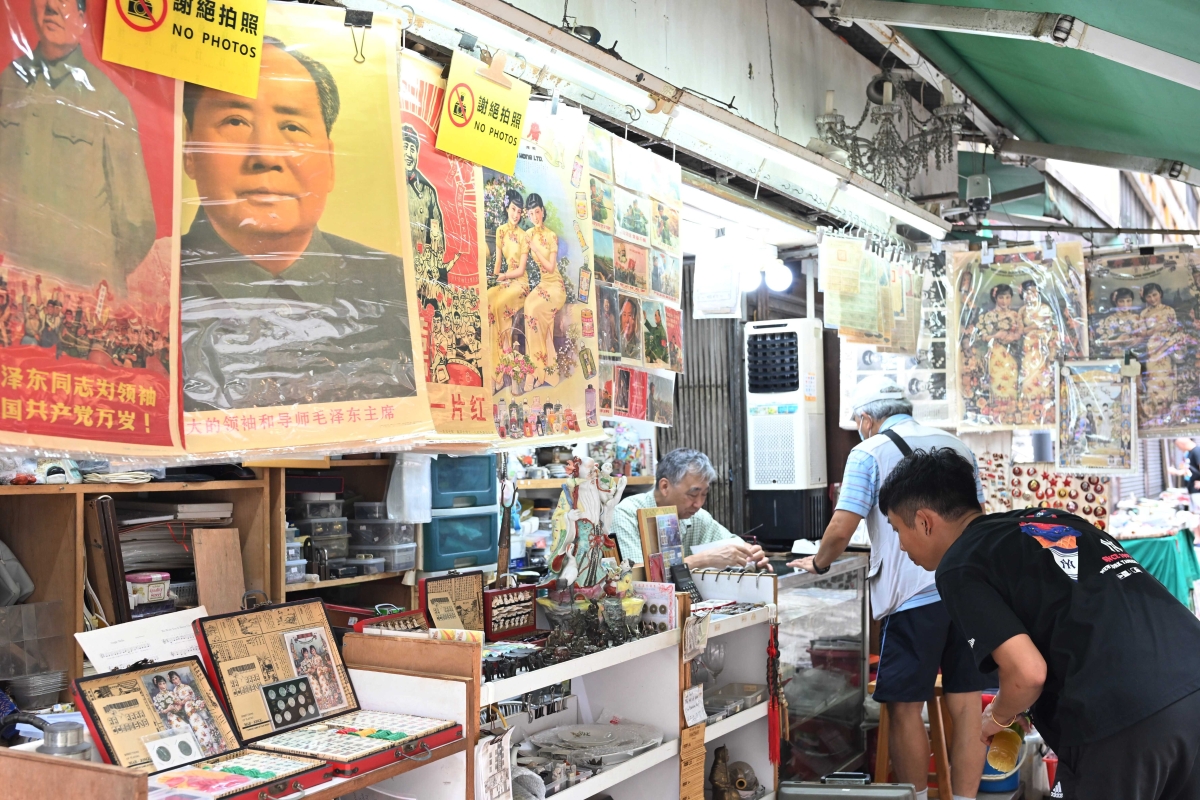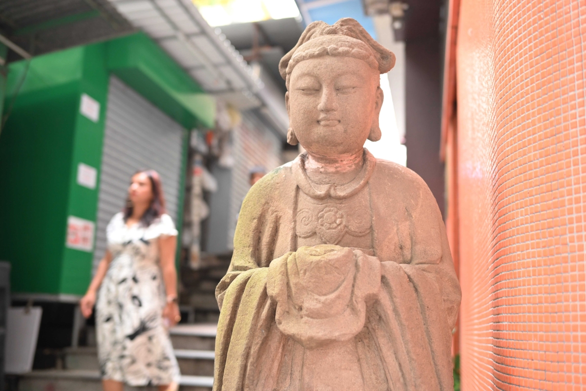 荷李活道附近的佛像。荷李活道是香港開埠後興建的第一條街道。如今的蘇豪區充斥著不少充滿外國特色的餐廳和酒吧,極具有香港中西文化的特色。附近的摩羅街,則是著名的古董和懷舊物品集中地