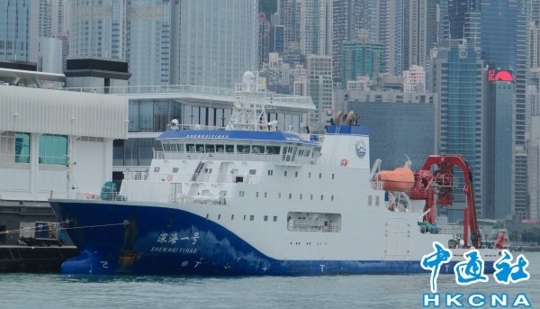 【字幕】9月24日,結束在西太平洋進行的首個國際深海科研考察航次後,中國大洋綜合科考船“深海一號”攜“蛟龍號”載人潛水器返航抵達香港尖沙咀碼頭,開始對香港特區的首次訪問。