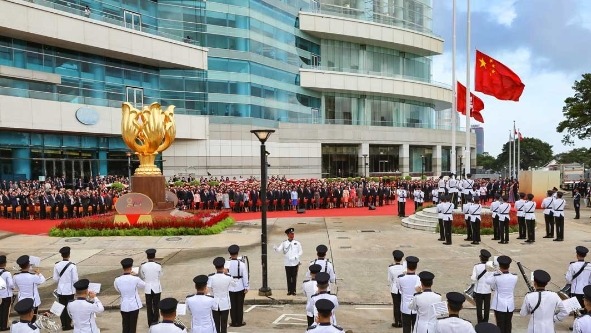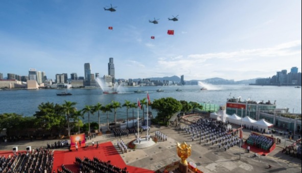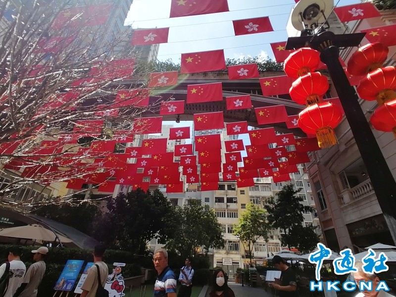 圖看香港迎國慶75周年活動香港新聞網9月27日電 國慶節臨近,香港各界已做好充分準備。早前,政務司司長陳國基聯同政務司副司長卓永興、文化體育及旅遊局(文體旅局)局長楊潤雄、民政及青年事務局(民青局)局長麥美娟和民政事務總署署長張趙凱渝舉行記者會,介紹今年國慶的各項慶祝活動、城市布置和特別優惠,讓市民參與其中,一同熱烈歡度國慶。