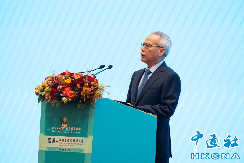 9月28日,第六任行政長官候選人政綱宣講及答問大會在中國與葡語國家商貿合作服務平台綜合體會議廳舉行。岑浩輝是第六任行政長官唯一的候選人,將於會上向行政長官選舉委員會委員介紹政綱,並回答提問。香港中通社圖片 岑浩輝在參選政綱前言中提到,隨著內外環境變化,澳門的發展繁榮面臨一系列挑戰,廣大市民對美好生活還有很多新要求新期盼,前進道路上也免不了有困難曲折,需要以更加開放的態度、積極創新的思維、奮勇協作的精神來面對和妥善解決。