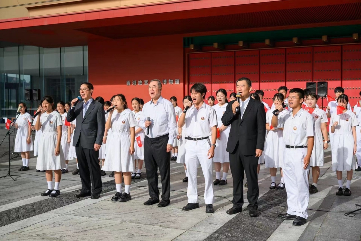 香港新聞網9月30日電 國慶日子臨近,香港各界“慶祝中華人民共和國成立75周年”活動紛紛展開。全國政協常委、西九文化區管理局董事局主席、香港江蘇社團總會創會會長唐英年提出新意思,首次率領香港學生在香港故宮文化博物館前、與身在江蘇無錫市錫山的學生兩地隔空對唱《歌唱祖國》,表達愛國熱情和祝福祖國繁榮 。 香港江蘇社團總會會長姚茂龍,和香港錫山同鄉聯誼會會長、唐英年弟弟唐慶年一起在香港故宮文化博物館門前,唱響主旋律,凝聚正能量。無錫是唐英年的家鄉;無錫市錫山是《歌唱祖國》詞曲作者王莘的故里 。參與是次活動的香港學生來自香港麗澤中學,無錫學生則來自天一教育集團無錫市蕩口中學。參加活動的人數超過100人。