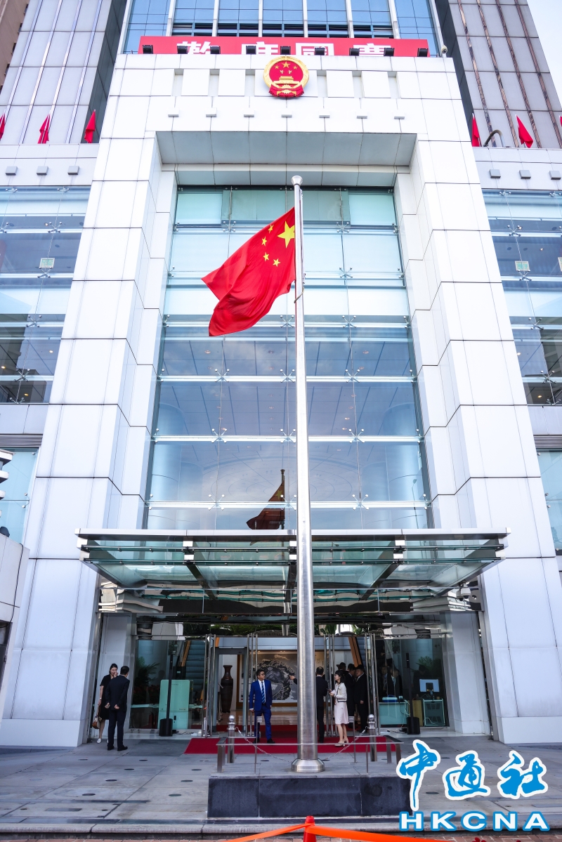 7時整,儀式開始。中央政府駐港聯絡辦主任鄭雁雄,副主任羅永綱、何靖、尹宗華,秘書長王松苗以及幹部員工代表在辦公樓前莊嚴肅立。升旗手身姿昂揚挺拔,步伐堅定有力,護送國旗進場。在雄壯的國歌聲中,旗手振臂高揮,鮮艶的五星紅旗冉冉昇起。全體人員精神飽滿,向國旗行注目禮致敬,并齊聲高唱國歌,共同祝福偉大祖國繁榮富強。 駐港國家安全公署、外交部駐港特派員公署、解放軍駐港部隊等中央駐港機構同時分別舉行國慶昇旗儀式。(完) 【編輯:陳卓儀】