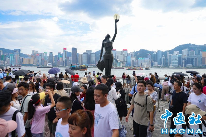 香港中通社10月1日電 (香港中通社記者 譚暢)10月1日國慶日,訪港人潮正如香港的天氣一般“熱氣騰騰”,人潮如織。