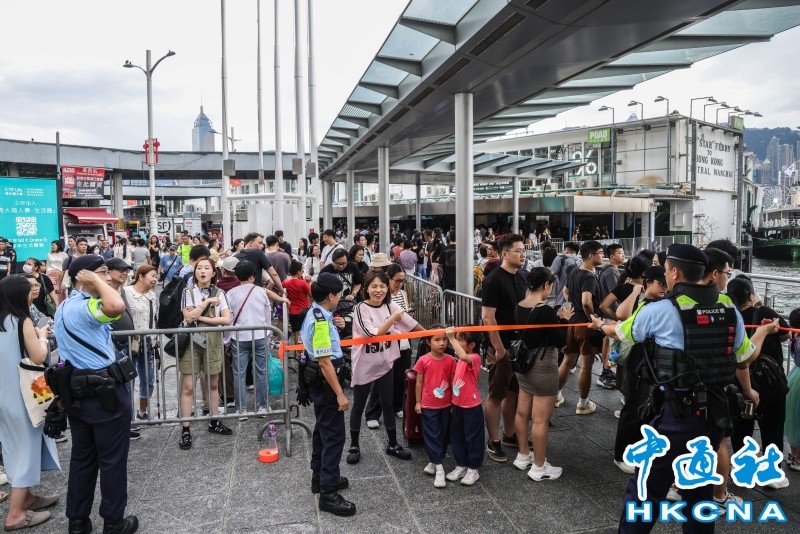10月1日,排隊乘坐天星小輪的隊伍延伸至海港城海運大廈露天廣場。(香港中通社圖片) 一些相對中環、尖沙咀等地而言不那麼熱門的地區,也都能看到大量遊客。內地遊客劉先生一家三口9月30日就來到香港,在炮台山附近訂了酒店。他說,自己30日半夜才抵港,未料坐港鐵時居然還有那麼多市民遊客,“香港真的是很熱鬧”。之所以選擇在炮台山住下,也是女兒查遊港攻略時得知東岸公園附近看煙花匯演別有味道。 來自廣州的背包客四人組,黃金周選擇來香港旅遊,她們表示香港就在灣區,不用太多攻略,背著包就能走,也不用擔心交通費用太貴。她們選擇經濟實惠的小旅館,每晚每個人約500港元,對於購物則比較隨性,“走到哪就逛到哪,沒有太具體的計劃”,至於晚上的重磅節目煙花匯演,也“佛系”說,人不多的話就會去看看。 香港大學等本地高校亦是遊客喜愛的“打卡點”。鑲有香港大學校徽及字樣的磚牆附近,不少到訪的市民遊客都在拍照合影,感受這所百年名校的文化底蘊。有遊客表示,參觀完港大正好到附近去看海景。 “重頭戲”煙花匯演,於晚上9時在維港上演。當天下午不到5時許,尖沙咀海岸旁已遍佈人潮。不少市民遊客提前來此,只為尋找一個“最佳視角”。有附近的餐廳表示,訂座情況理想,國慶日未至時,訂座率已達九成。 香港本地的優惠活動亦創佳績。特區政府早前宣佈,在國慶日請市民半價看電影。特區政府文化及體育旅遊局局長楊潤雄1日下午在社交平台發文表示,國慶日當天已賣出超過15萬張電影票,許多觀眾都是一家老小來電影院,作為他們歡度國慶假期的第一個節目。 此外,為保障市民遊客出行安全及遊玩體驗,香港特區政府各部門都緊密運轉。 香港海關、警務處、入境處及相關部門成立的跨部門聯合指揮中心,早在9月28日便已啟動,至10月7日期間都將實時監察口岸現場情況;海關亦加強巡查全港各區購物熱點;警務處處長蕭澤頤更於10月1日下午,赴尖沙咀文化中心一帶視察,了解封路及人群管制措施實施情況。 內地國慶黃金周的熱潮仍在延續,慶國慶,香港遊人如織。(完) 【編輯:李冉】