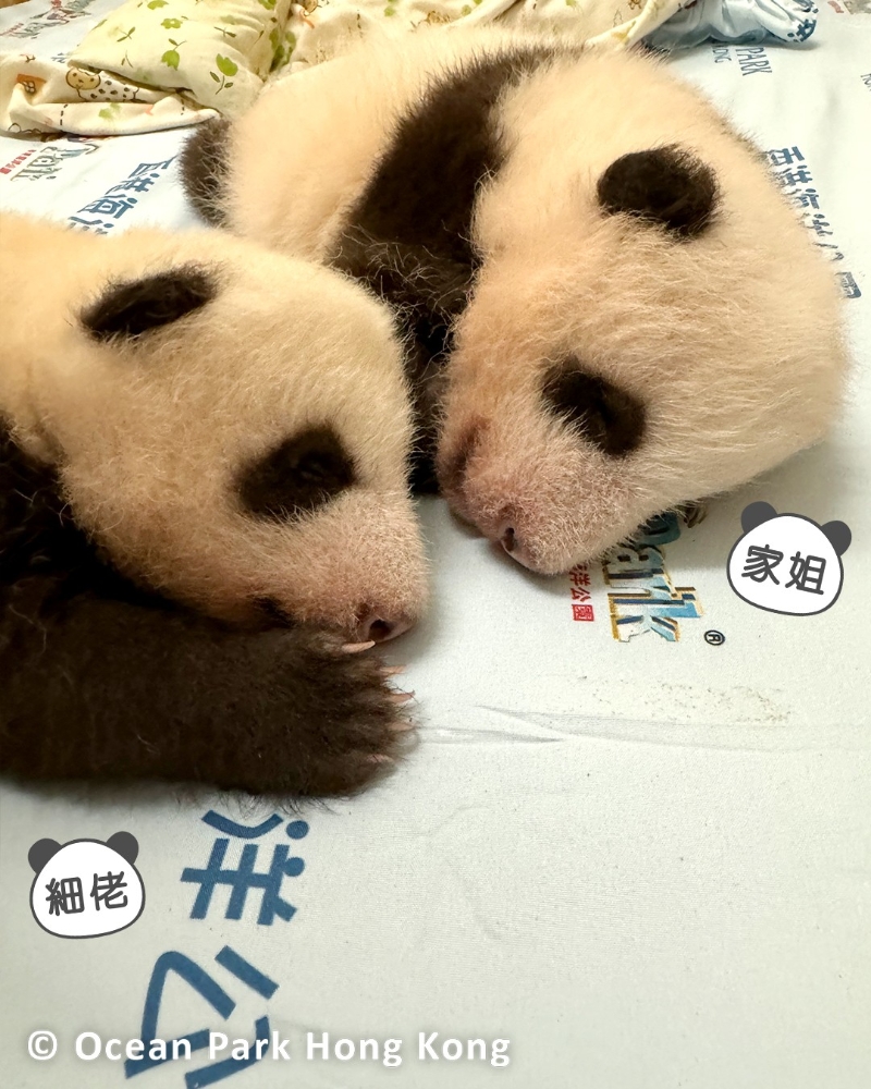 港產大熊貓龍鳳胎長出毛髮