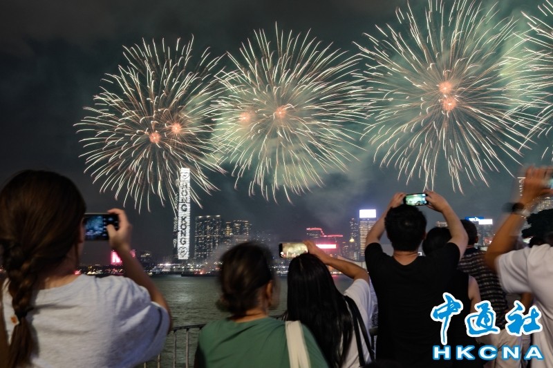 (香港中通社圖片) 香港入境處指,國慶期間會加強與內地部門聯繫,有需要時採取分流疏導措施,確保過關人流暢順。 33萬人看煙花 昨日“重頭戲”煙花匯演於當晚9時在維港上演。據悉,吸引超過33萬名市民和遊客在灣仔、中環和尖沙咀一帶觀賞。 不少巿民、遊客形容,此次國慶煙花匯演場面壯觀、震撼。香港特區行政長官李家超當晚在大匯演晚會上致辭時表示,在過去四分之三個世紀,國家發展一日千里,已踏上以中國式現代化全面推進強國建設、民族復興的新征程。國家在不同領域的偉大成就熠熠生輝,令每一位中華兒女都感到無比自豪、無比驕傲。