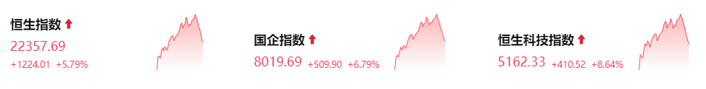 2024年10月2日港股行情。(圖源:富途) 今日,港股繼續大漲。恒生指數高開0.74%,恒生科技指數高開1.86%。開盤後,兩大指數繼續上行,截至發稿,恒生指數大張5.79%,恒生科技指數大漲8.64%。 熱門港股方面,申萬宏源香港漲134%,國泰君安國際漲近35%,招商證券漲超60%,中信證券漲近28%,光大證券漲近27%,中金公司漲超26%。 消息面上,國慶假期第一天,據《證券時報》消息,多家券商營業部均照常營業,安排了人員值班,一方面積極幫助新客戶開戶入場,另一方面幫助一些原有客戶及時開通兩融業務權限等。線上營業部照常營業,線上對客戶新開戶和新開通權限審核不停歇,多家券商還安排了券商投顧和研究所聯合的國慶節七天的直播路演,服務線上客戶。 昨夜,美股收盤,熱門中概股全線上漲,納斯達克中國金龍指數大漲5.48%。嗶哩嗶哩漲超14%,富途控股漲超12%,理想汽車漲超11%,房多多漲超9%,拼多多漲超8%,名創優品、京東、微博漲超7%,阿里巴巴漲超6%,騰訊音樂、小鵬汽車、唯品會、蔚來漲超5%,愛奇藝、百度漲超4%,虎牙、鬥魚、網易、滿幫漲超3%,新東方漲超1%。 據了解,貝萊德將中國股票的評級從中性上調至超配。貝萊德投資研究所表示,鑒於中國股票相對於發達市場股票的折價接近創紀錄水平,且存在可能刺激投資者重新入市的催化劑,短期內仍有適度增持中國股票的空間。 亞太股市其他市場多數下跌,截至發稿,日經225指數跌近2%,韓國綜合指數跌近1%,澳洲標普200指數微跌。 (完) 【編輯:錢林霞】