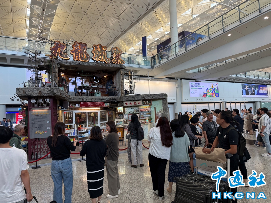 香港中通社10月7日電 題:九龍城寨現身香港機場 港片美學吸引旅客打卡
