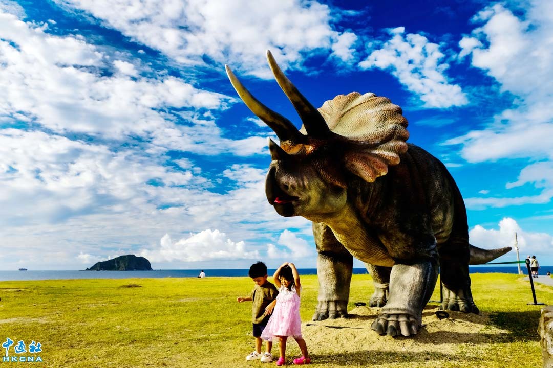 台灣基隆恐龍AR生態園區結合5G技術、將億萬年前的生物與環境重現在自然景觀中,提供全新型態的綠色觀光體驗,引領遊客深入史前恐龍的棲息地。基隆恐龍AR生態園區,推出後人潮爆多,帶動園區的商家發展,人氣爆滿。香港中通社圖片