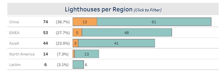 全球“燈塔工廠”名單出爐 近六成來自中國香港新聞網10月9日電 世界經濟論壇昨(8日)公佈最新一批“燈塔工廠”名單,來自中國的占比創新高。此次名單中有22家製造企業加入全球燈塔網絡(Global Lighthouse Network),包括19個第四次工業革命燈塔和3個可持續燈塔。最新當選的“燈塔工廠”分布在中國、捷克、德國、印度、墨西哥、新加坡、瑞典、土耳其、瑞士和越南10個國家,其中位於中國的工廠有13家,占比接近60%,創歷史新高。 據了解,自2018年首次評選至今,全球“燈塔工廠”已累計達到172座,位於中國的工廠數量達到74家,占比43%。