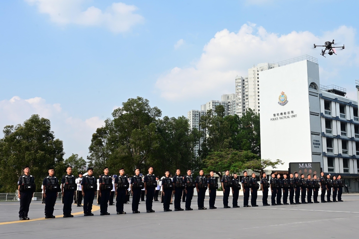 (圖源:香港警察FB) 成立典禮在警察機動部隊總部舉行,隊員由無人機領航帶領進場,為典禮拉開序幕。典禮當日除有精彩的無人機表演外,焦點還包括警隊首個無人機旗隊的飛行表演,展現獨特的無人機駕駛技術及科技的應用。“警察無人機隊”主管勉勵各隊員,在未來的警務工作中,必須繼續守護社區和市民的安全。