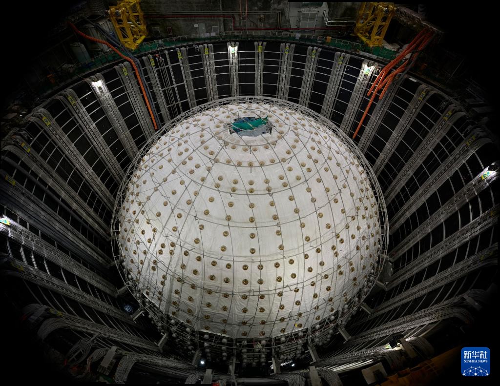10月9日拍攝的建設中的江門中微子實驗中心探測器(拼接照片)。新華社圖片 據央視報道,江門中微子實驗以測量中微子質量順序為首要科學目標,并進行其它多項重大前沿研究,其核心探測設備位於地下700米的實驗大廳內44米深的水池中央,它由直徑41米的不銹鋼網殼、直徑35.4米的有機玻璃球,以及2萬噸液體閃爍體、45000只光電倍增管等關鍵部件組成。 江門中微子實驗2013年立項,2015年開工建設地下實驗硐室,2021年底,地下硐室交付使用并開始探測器安裝。目前,江門中微子實驗中心探測器最內層的有機玻璃球已合攏,外層的不銹鋼網架和光電倍增管也在有序合攏中,預計11月底完成全部安裝任務,并啟動超純水、液體閃爍體的灌裝,2025年8月正式運行取數,預計運行約30年。 中微子是宇宙形成之初就存在的最古老也最原始的基本粒子,攜帶著非常多重要的神秘信息,研究中微子對於認識宇宙和我們現存的世界物質都具有非常重要的意義,也是國際最前沿的基礎科學。 江門中微子實驗有機玻璃球內徑35.4米,由263塊12厘米厚的烘彎球面板和上下煙囪粘接而成,有機玻璃淨重約600噸,是世界最大的單體有機玻璃球。事實上,相比其35.4米的直徑,12厘米厚的有機玻璃球按比例換算,就好像雞蛋殼一樣薄。有機玻璃板材生產採用獨特配方和工藝,具有高透光率和低本底的特點,其天然放射性本底鈾和釷的質量占比小於一萬億分之一。有機玻璃球粘接採用大體量注料、聚合、退火的本體聚合技術,粘接縫總長度約2公里,并採用特殊方法對粘接縫進行保護。 有機玻璃球作為探測中微子的靶物質液閃的容器,將承載20000噸液閃,同時整個球體置於純水中運行,運行中需要長期承受約3000噸的浮力,該受力通過有機玻璃節點、連接桿和不銹鋼節點傳遞到不銹鋼網殼主結構上,在連接桿上裝有傳感器進行受力監測。特殊設計的不銹鋼結構預埋入有機玻璃中作為有機玻璃節點,經過反複設計優化和上百次試驗最終獲得超高承載能力,并且部分不銹鋼節點採用碟簧設計方案、有效改善了有機玻璃節點的受力分布。 為了建造這一大科學裝置,江門中微子實驗團隊集智攻關、多措并舉,攻克多項技術難關: 1.成功研製出具有自主知識產權的國際最高光子探測效率的光電倍增管,打破了該領域的國際壟斷,并獲歐盟、美國、日本等的專利授權。 2.研製出高強度、高精度、高透光率光電倍增管水下防爆系統。 3.研發了高潔淨度、高密封、高效率的液體閃爍體(簡稱液閃)純化系統,獲得目前國際上衰減長度最高的液閃。 4.採用水下電子學的創新設計,以民用器件實現了航天級別的可靠性。 5.完成有機玻璃球、不銹鋼網架等探測器關鍵部件的設計、研製、批量生產及安裝。 6.建成國內最大跨度的深埋地下洞室,該洞室頂部起拱跨度達49.5米,相關施工屬於世界級的超常規地下工程。 江門中微子實驗建成後將成為國際中微子研究的中心之一,與日本的頂級神岡中微子實驗和美國的深部地下中微子實驗形成中微子研究的鼎足之勢。這將使中國在中微子研究領域的國際領先地位得到進一步鞏固。(完) 【編輯:俞丹鳳】