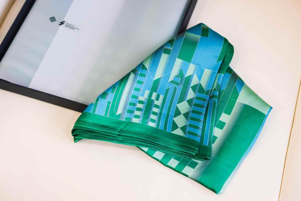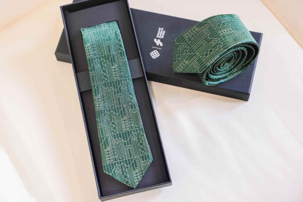 香港理工大學師生攜手設計製作的領呔和領巾。(圖源:李家超社交平台) 李家超介紹,師生團隊在設計上,融入本地標誌性的摩天大廈,呈現香港的繁榮昌盛,並利用縱橫交錯的線條,象徵香港是連接祖國與世界各地的重要橋樑。 他指出,領呔和領巾採用施政報告的綠色,寓意香港未來發展欣欣向榮,是別具意義。他非常欣賞一班年輕人的創作意念,期望藉此機會鼓勵社會各界,多為學生和年輕人提供創作空間,鼓勵他們發揮創意,為香港注入更多創新活力。(完) 【編輯:張麗欣】