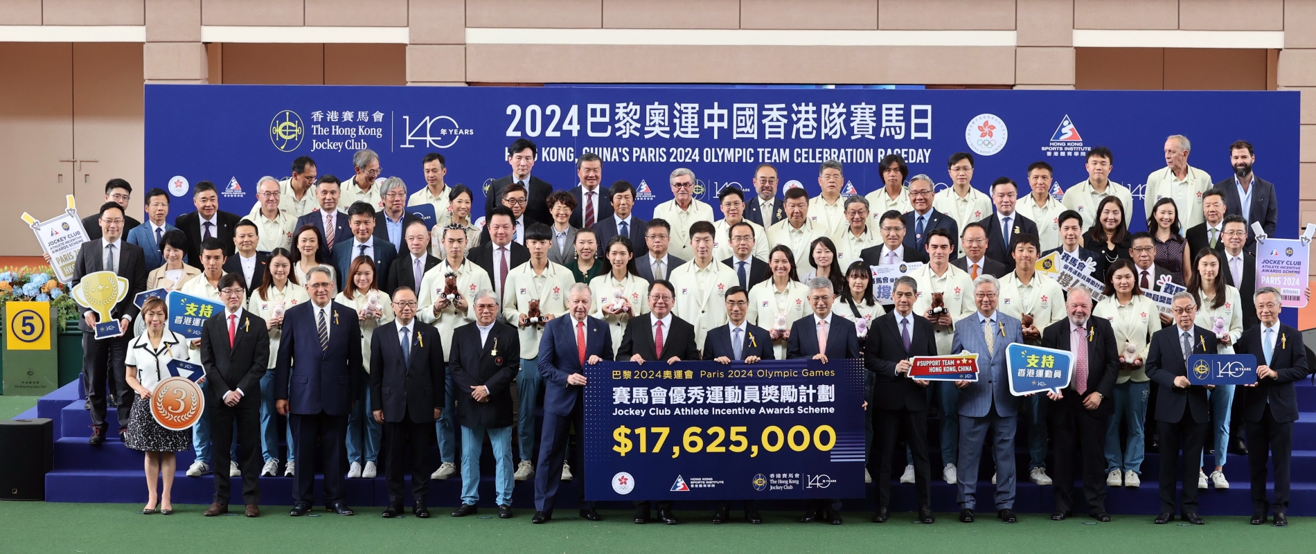 主禮嘉賓、香港特別行政區政府政務司司長陳國基再次祝賀中國香港代表隊在巴黎奧運勇奪佳績。他在致辭時表示,中國香港代表團在巴黎奧運會的成功,有賴運動員、教練團隊和體育界的共同努力,以及社會各界的鼎力支持。特區政府將繼續聯同各界全力支持體育發展,讓運動員能够發揮潛能、盡展所長,在國際體壇屢創佳績。他還感謝馬會一直大力支持香港體育發展,慷慨獎勵在比賽中勇奪佳績的運動員,及舉行頒贈儀式,肯定運動員的表現。 馬會主席利子厚向中國香港代表團致以衷心的祝賀及感謝,“香港健兒在巴黎奧運會這個國際舞台上展示非凡實力,向世界展現不屈不撓的香港精神,我和全港市民一樣,感到無比光榮和自豪。馬會亦很高興透過支持‘賽馬會優秀運動員獎勵計劃’,向巴黎奧運取得佳績的運動員頒發合共1,762萬5千港元獎金,聊表心意。”利子厚續指,體育有著改變生命、凝聚社會的力量,馬會將繼續透過與社會各界多方協作,支持中國香港運動員在世界體育舞台發光發亮。