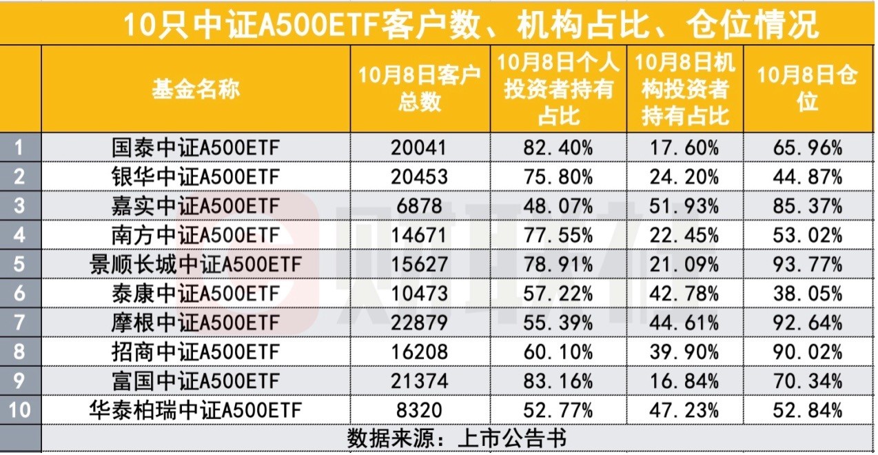 圖源:財聯社 作為新“國九條”以來,首批寬基ETF,中證A500ETF從審批設立之初就承擔著歷史使命而來。 首先,梳理時間線,這是一隻還沒有發行指數,但是產品已經銷售結束的ETF,這也是業內首次。2024年4月,新國九條提出“建立交易型開放式指數基金(ETF)快速審批通道,推動指數化投資發展”,助力ETF審批速度加快,從申報到獲批僅用時一天。從時間上來看,8月27日中證指數公司宣布中證A500指數的發佈時間為9月23日,9月5日,跟蹤該指數的ETF正式申報,9月6日,首批中證A500ETF獲批。 其次,中證A500ETF也是公募基金費率改革第二階段降傭之後首次大規模發行寬基ETF,在沒有過高獎勵、沒有換量等潛規則之下,券商銷售戰鬥力如何?這是一次全新的驗證。 有分析表示,作為寬基指數基金,中證A500ETF為投資者布局資本市場提供了重要投資工具,方便各類看好A股長期向上趨勢的機構借道入市。 以華泰柏瑞中證A500ETF為例。除去上海證券正和2號FOF單一資產管理計劃外(持有4.81%),該基金前十名基金份額持有人均為各大證券公司。其中,華泰證券持有基金份額占比最高,為15.38%;中國銀河證券、方正證券、國聯證券持有份額隨後,占比分別為4.81%、3.36%、3.21%。 銀華中證A500ETF則被多家私募持有。該基金前十名基金份額持有人中,上海鶴禧私募旗下,鶴禧阿爾法一號私募證券投資基金為第一大持有人,持有基金份額7428.9萬份,占比3.71%。科瑞菲亞、上海秉昊私募、海南夯牛私募3家私募機構合計持有份額3225.51萬份。 分析人士表示,當前市場處於預期大拐點向行情大拐點的過渡階段,行情繼續深化升級需要基本面支撐。後續板塊間可能會出現分化,有基本面支撐的板塊或為更佳選擇。(完) (本文內容僅供參考,不構成投資建議。) 【編輯:錢林霞】